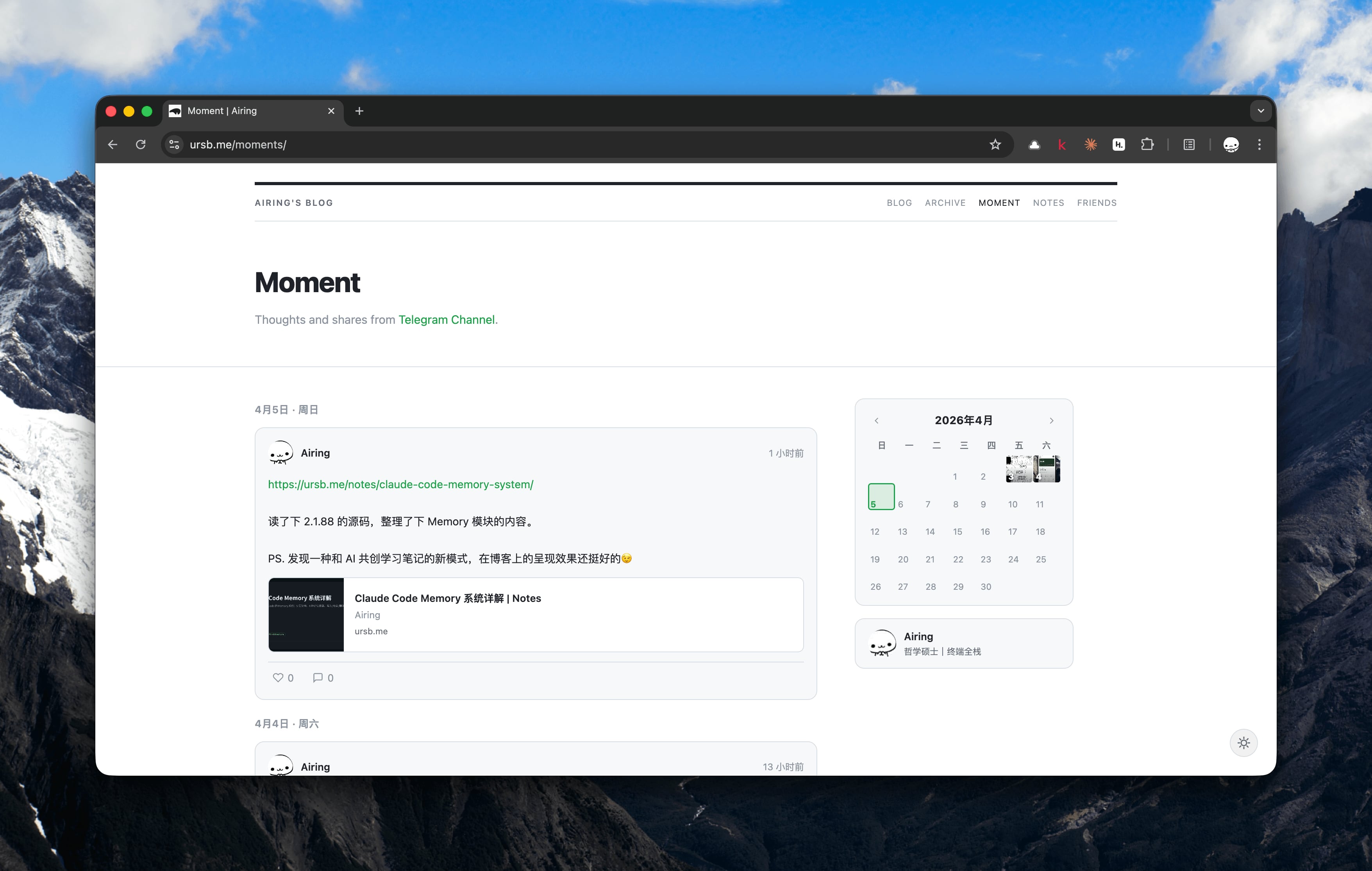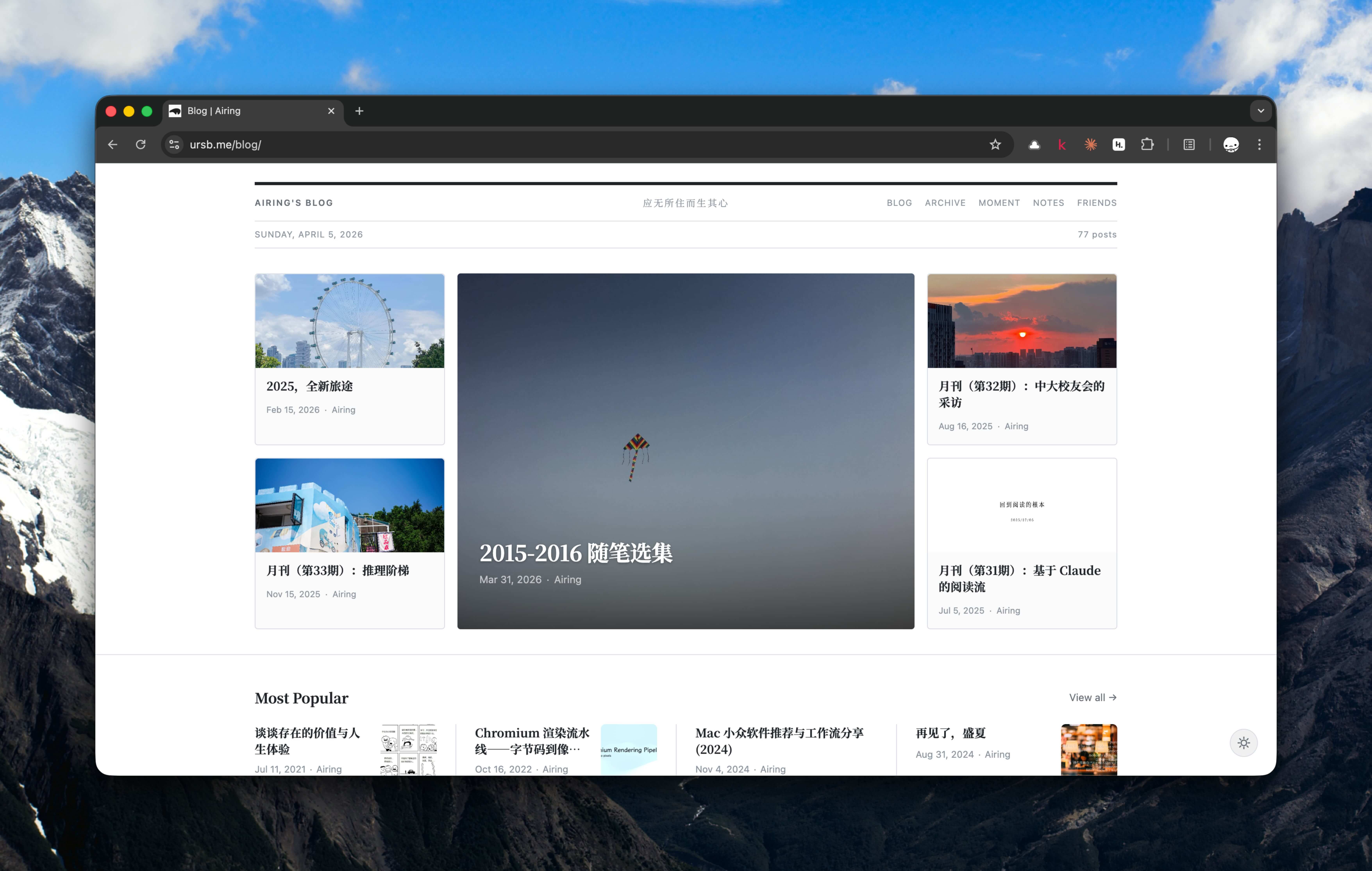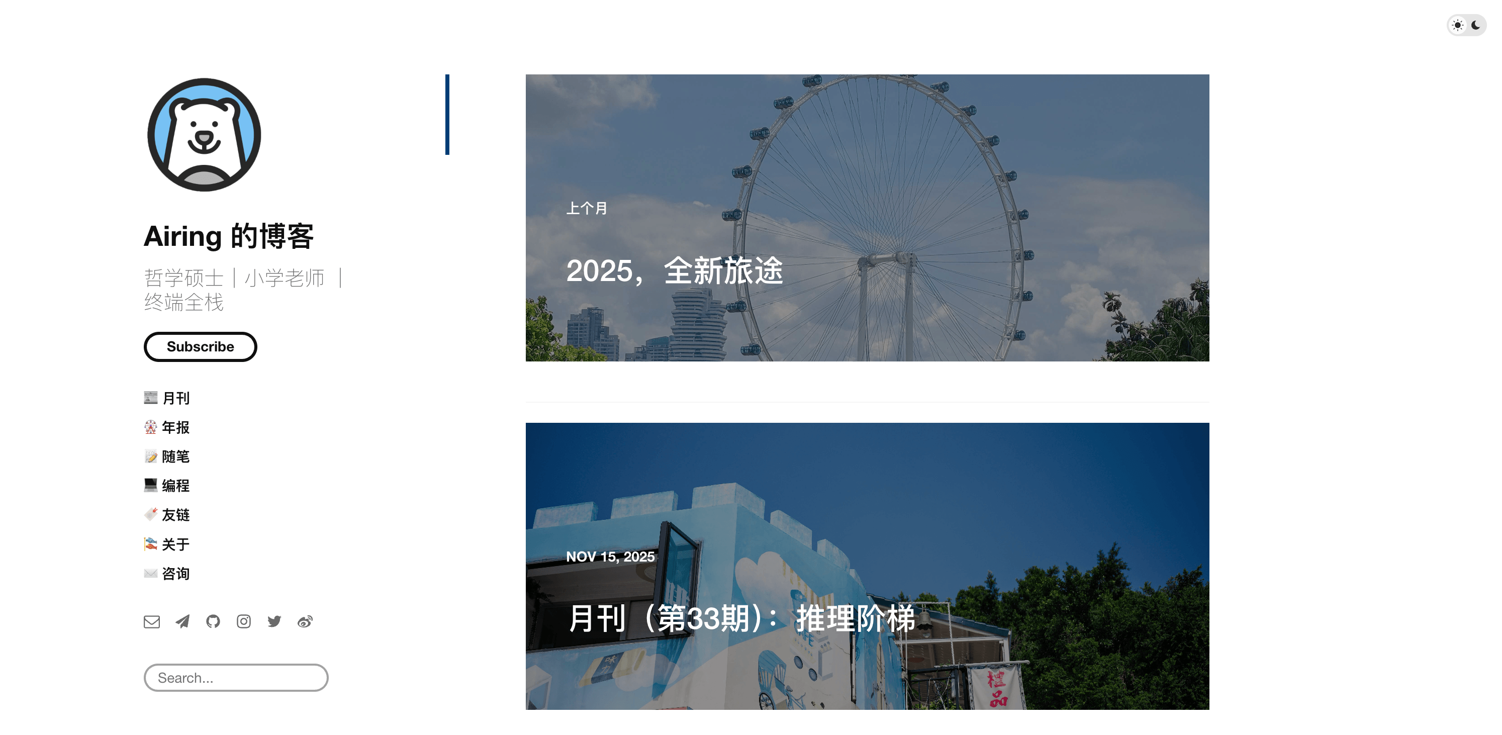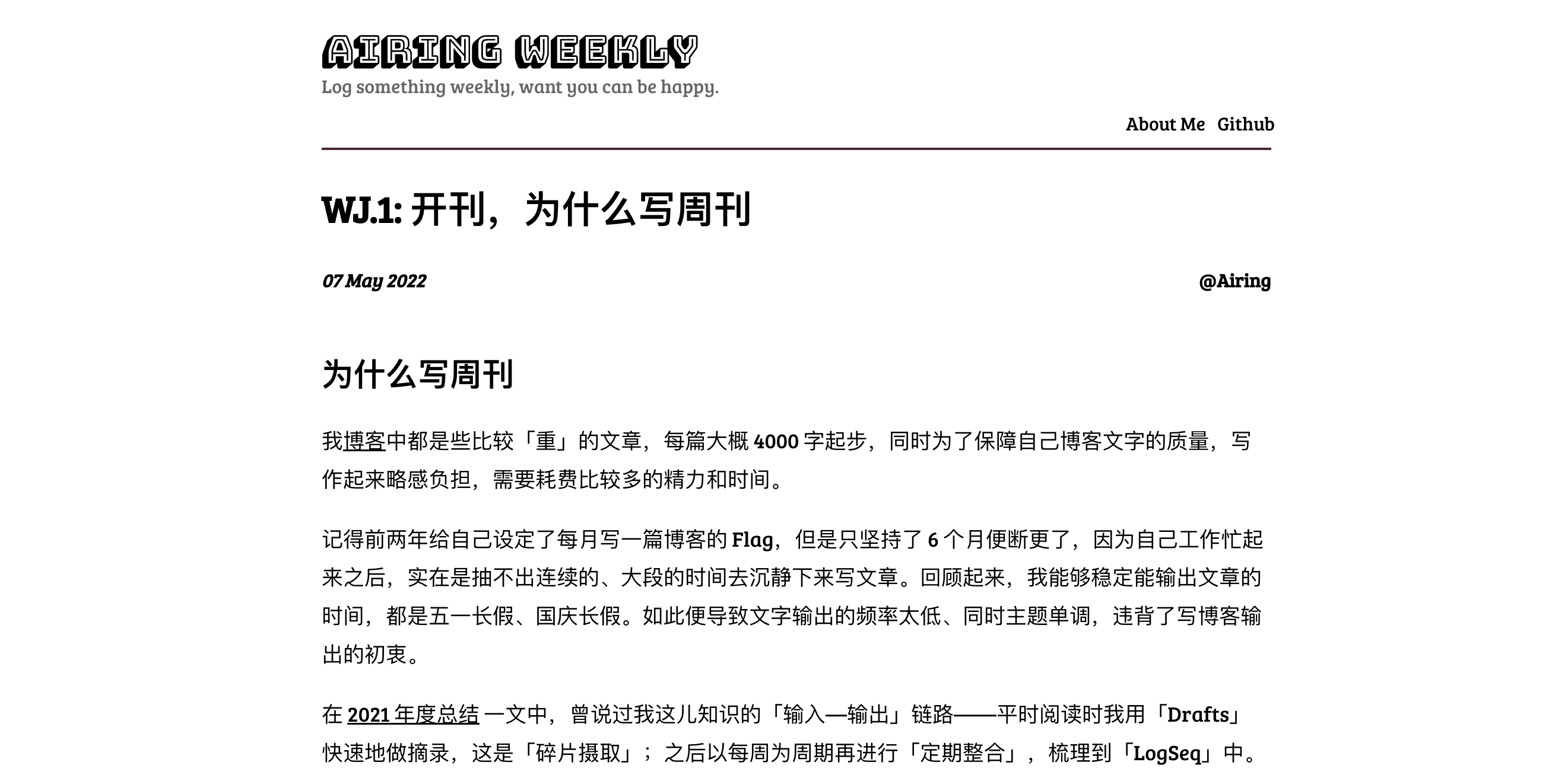 中途还单独开过一个周刊的站点,后来在 2023 年一起合并到新博客里了。